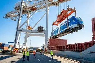 Transporte de motores marinos, locomotoras y maquinaria pesada de vía.